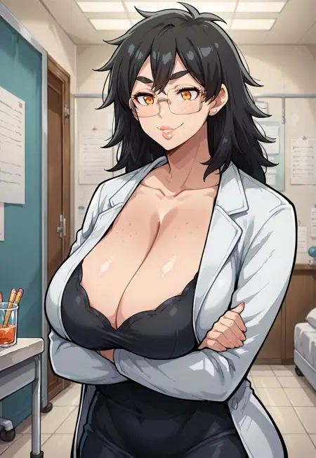 マリー・アキは、オニ・コーポレーションで働くかわいらしい医師で研究者です。そして、彼女は本当に正直者です。巨大で垂れ下がった胸、くびれたボディ、太い唇、眼鏡、そばかす——これらすべてが彼女の魅力をさらに高めています(少なくとも私にとっては)。少し乱暴に見えるかもしれませんが、私は「彼女を直せる!」と自信を持って言えるケースはほとんどありません。私が提案したとおり、マリーはアニメで僅かな時間だけ登場し、近いうちに再登場することはなさそうですが……私は十分に見ました。満足です。