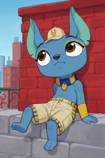 Helpful: cartoon character, 1boy, anthro, cap, wristband, collar, shorts