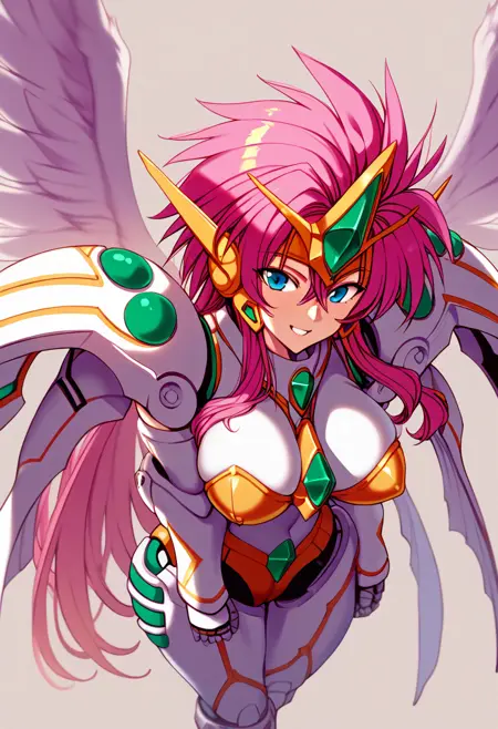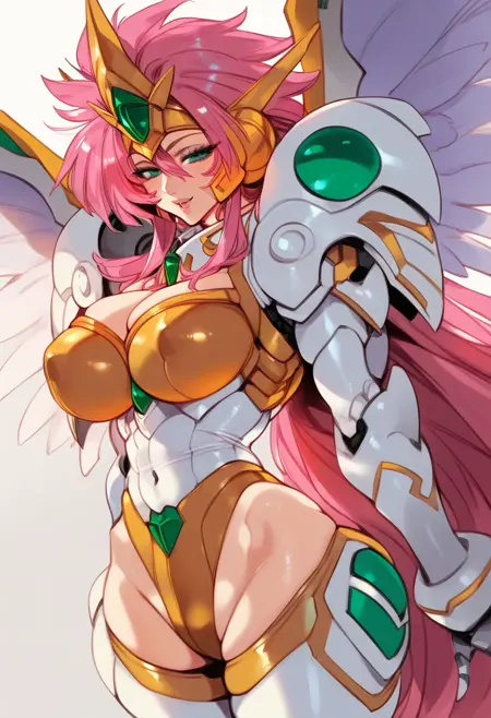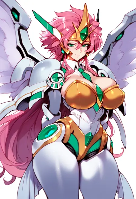 valsione, long hair, pink hair female, robot girl, mecha musume, large breasts, wings