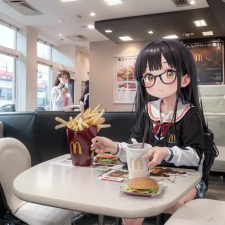일본 맥도날드 실내 풍경을 표현할 수 있을지도 모를 LoRA입니다.