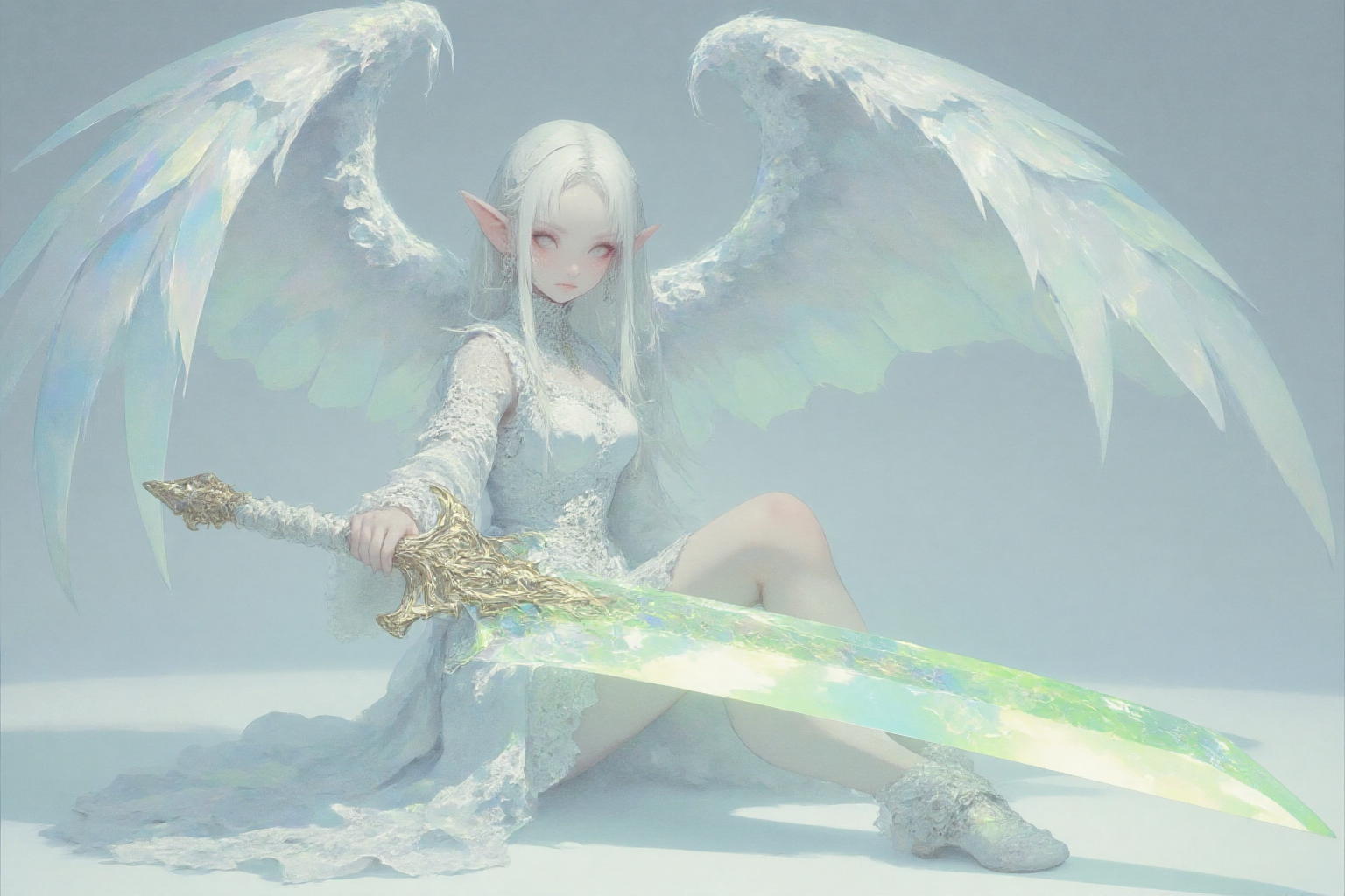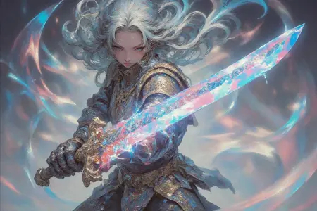 (chinese girl anime style and dynamic pose with sword artworks special edition)