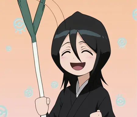 smile,happy,closed eyes,^_^,open mouth,holding spring onion