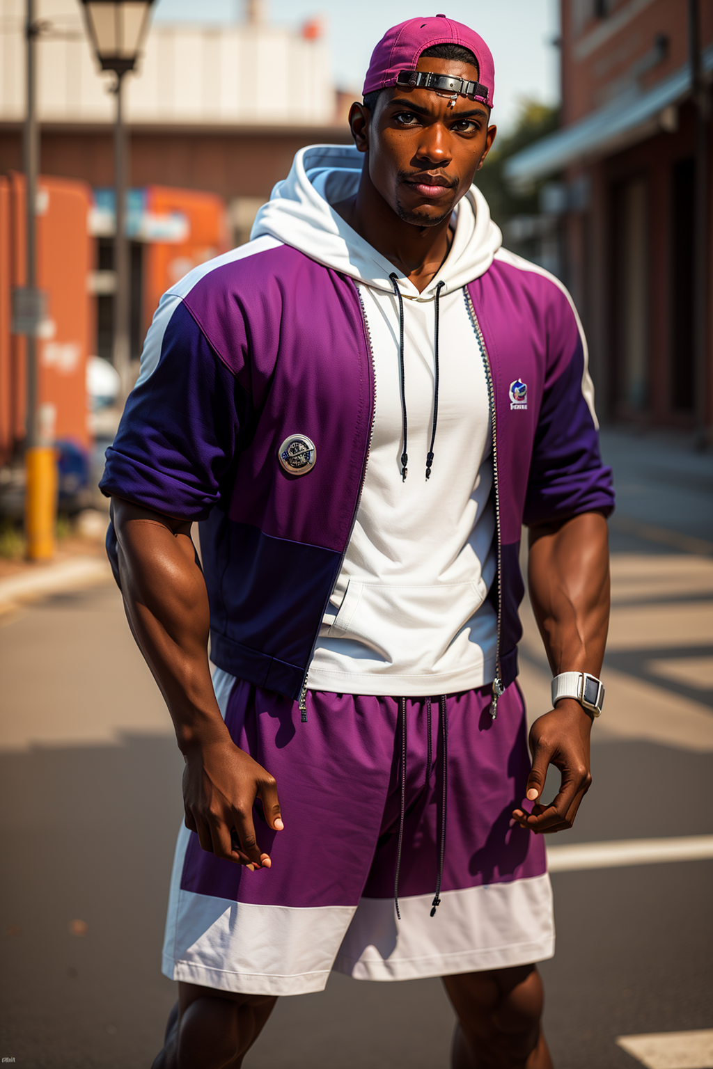 also: backward hat, trucker hat, jacket, hoodie, shirt, basket shorts, bermuda shorts, sneakers, socks, bracelets