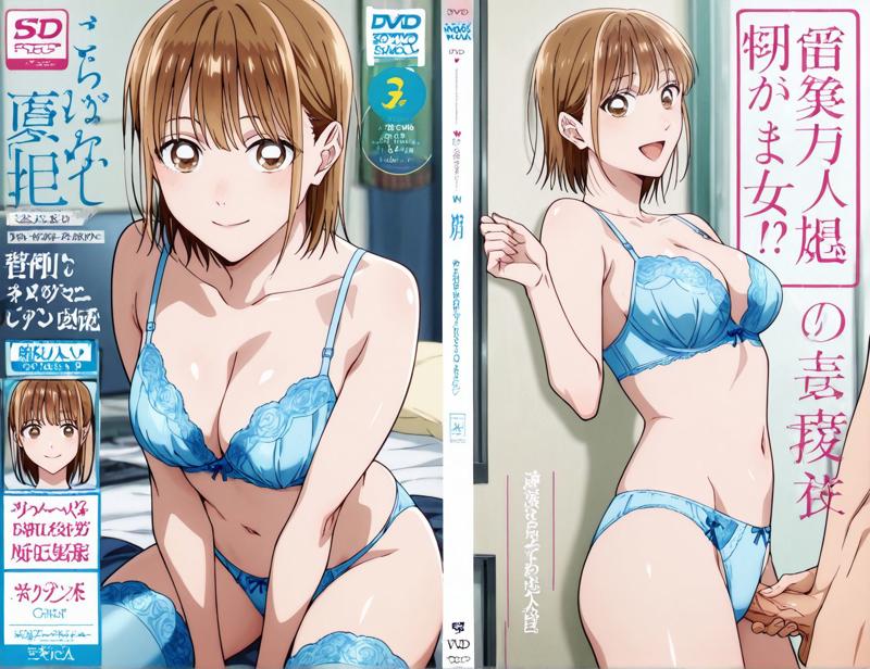 1girl, AV cover, dvd cover, DVD box cover, studio logo, title text prominent