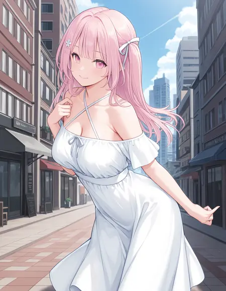 outfit04, dress, one-piece dress, white dress, cross halter neck dress, bow dress, sandals, white sandal, lace up sandal