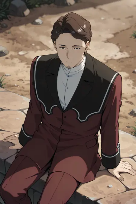 Richter, richter (sousou no frieren), brown hair, brown eyes, facial hair