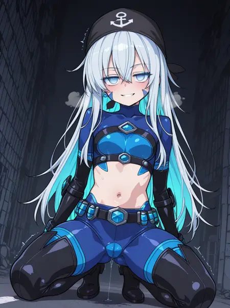 触发词:肚脐、珠宝、耳环、露脐、头巾、蓝眼睛、空洞的眼神、蓝色紧身衣、妆容、面部纹饰、(蓝色眼影:1.25)、大腿靴、蓝色内发、金属腰带,