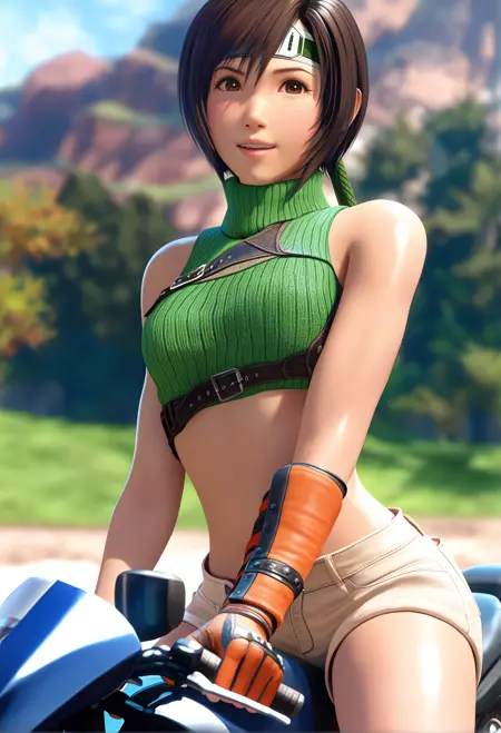 green crop top, shorts,gloves,pauldron,