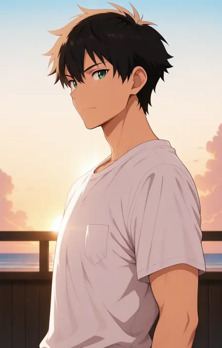 表情と衣装は生成ごとに一貫しています。ポートレートやミッドショットの構図で最も効果的です。衣装交換をサポート — 他の衣装を着用しても、Saitoの核心的な特徴は維持されます。