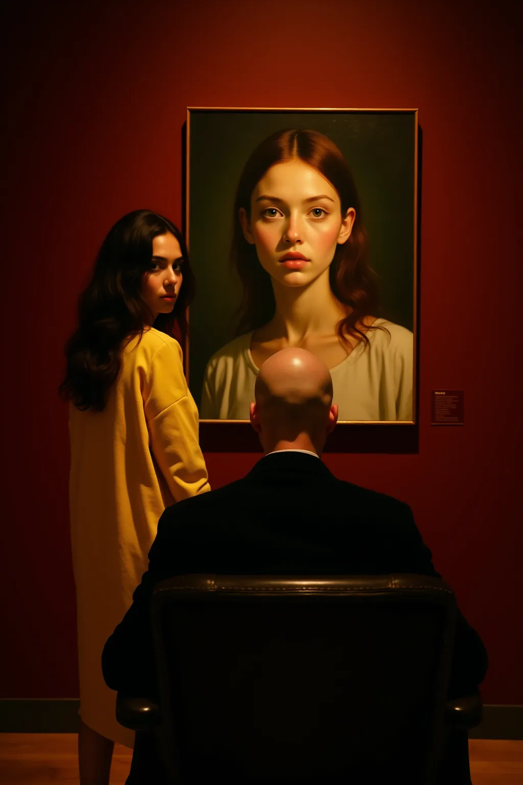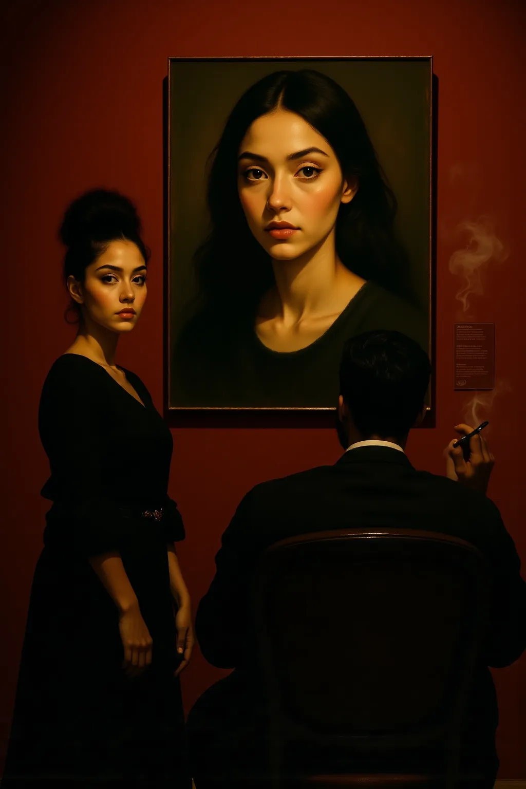 画作:墙上挂着一幅这位女性的大型古典肖像。🖼️