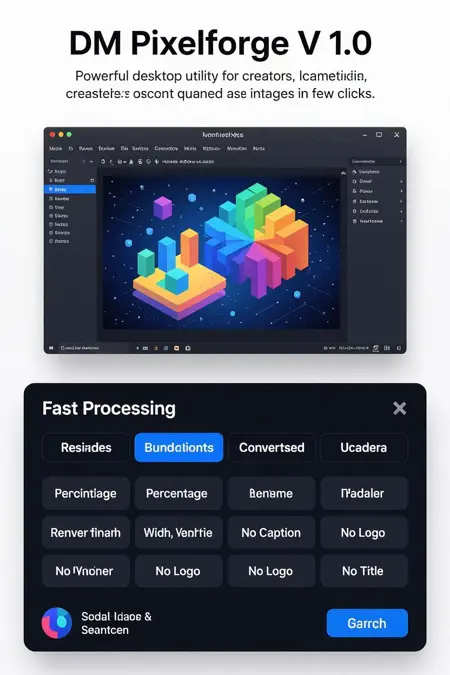 DM PixelForge 是一款专为需要快速、批量处理图像且不愿承受臃肿软件的创作者打造的强力桌面工具。它以简洁和高速为核心,自动化完成图像的缩放、重命名、格式转换和填充操作,让您只需点击几下即可批量编辑数百张图片。