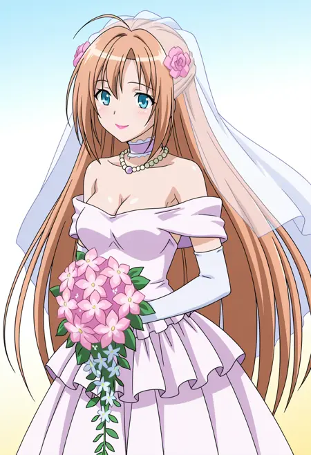 sakura_kaede, kaede_wedding, brown hair, very long hair, ahoge, half updo, blue eyes,