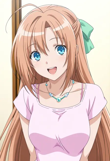 sakura_kaede, kaede_casual2, brown hair, very long hair, ahoge, half updo, blue eyes,
