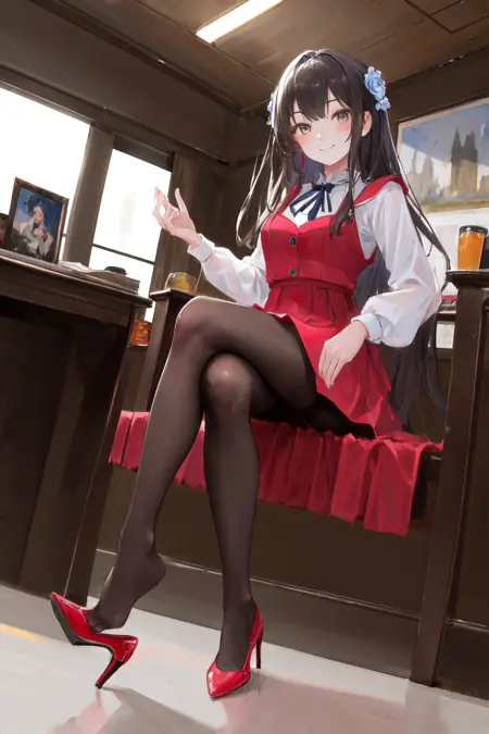 There are chances the LoRA fails. You may see multiple legs, multiple shoes, floating shoes or high heels not dangling.