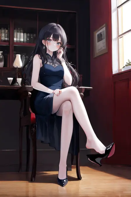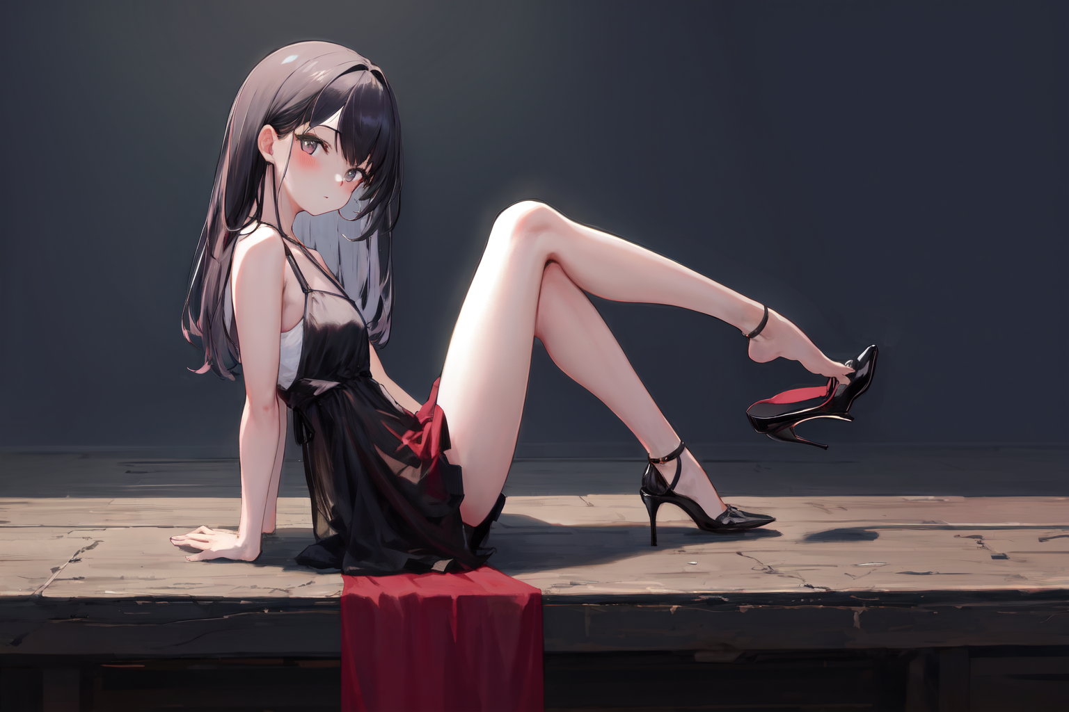 Concept LoRA for high heels dangle (high heels + shoe dangle). The examples are using LoRA weight=1 and highres fix ESRGAN_4x with denoising strength=0.4 or 0.5.