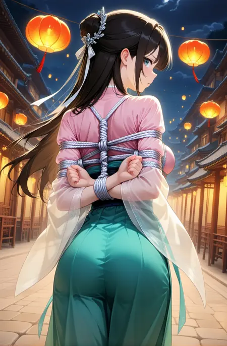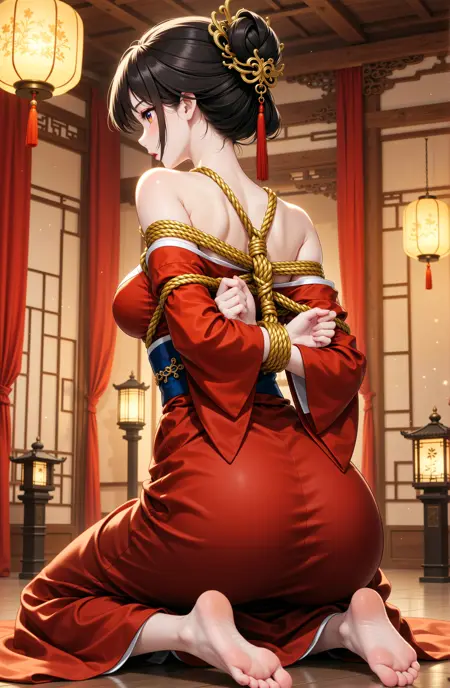손목 교차 부분에서 오류가 거의 없는 일본식 타카테코테 결박 자세, 뒤쪽 시점, W자형 중 가장 단단한 설정. 사실적 및 만화 스타일 모두 적합하며, 다양한 옷과 호환. 로프 앞에 색상 힌트를 추가할 수 있으며, 빨강, 갈색, 흰색, 분홍, 금색을 지원. 다른 색상은 직접 실험해 보세요. 금색은 금속색으로, 황금 질감을 연출할 수 있습니다. 골반 로프를 원하지 않는다면, 부정적 프롬프트에 "골반 로프"를 포함하세요. 그렇지 않으면 대부분 자동으로 골반 로프가 그려집니다.