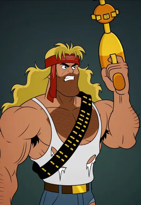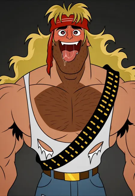st3v3, long hair, blonde hair, messy hair, black eyes, five o,clock shadow, chest hair