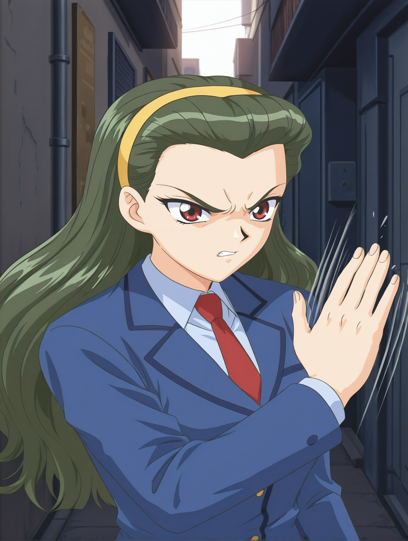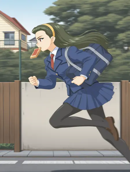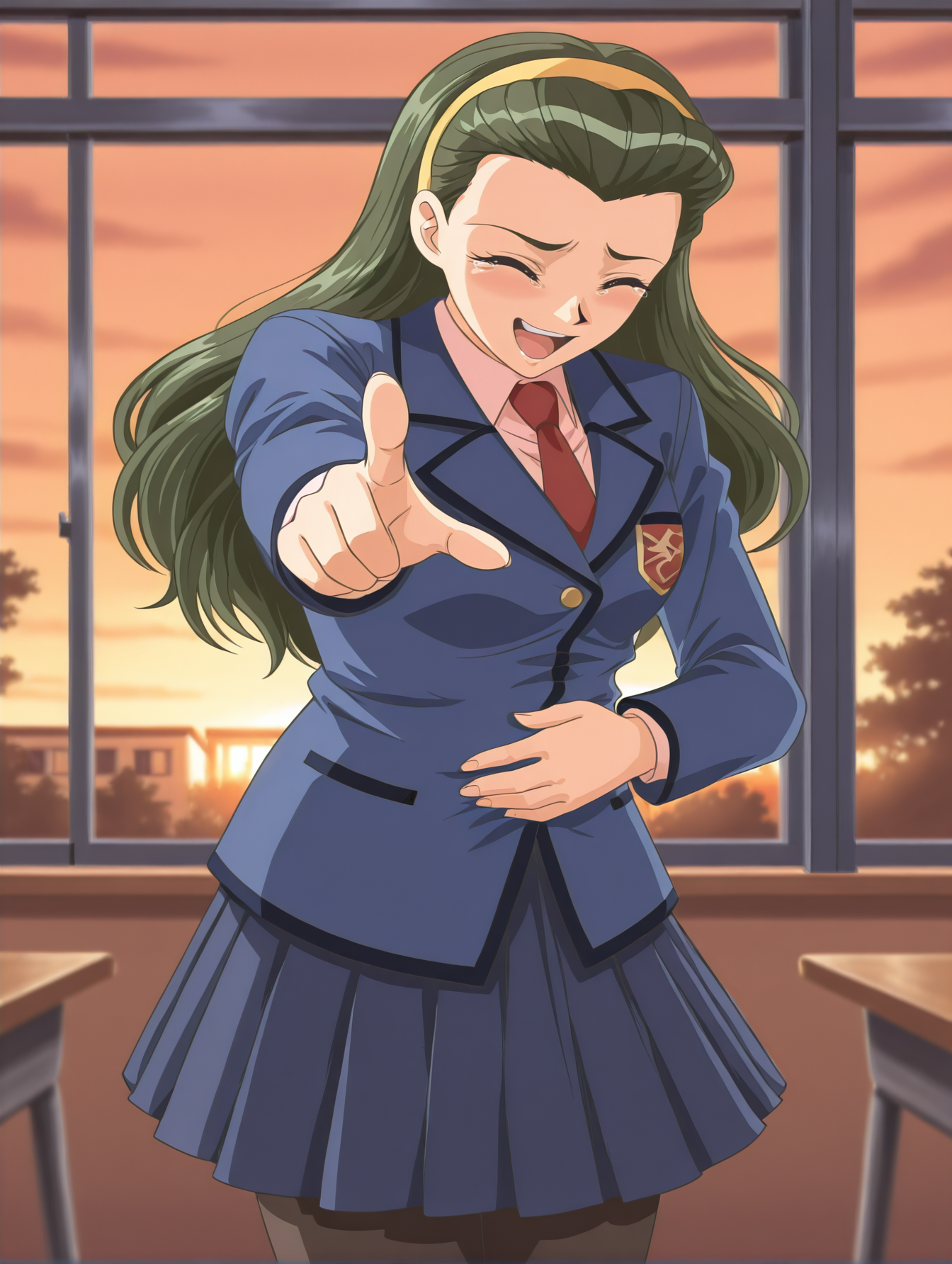 r31k4t4k47suk4sa, hairband, blue jacket, necktie, pleated skirt, pantyhose