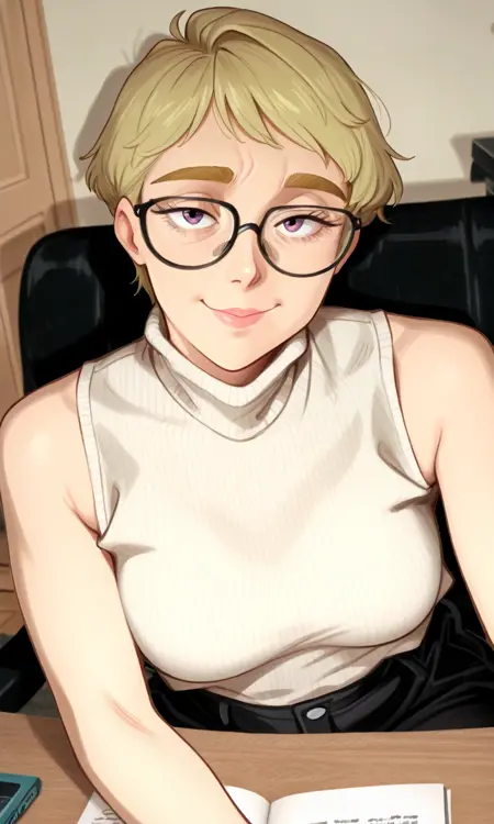 眼镜, 黑框眼镜, 无袖高领衫, 高领, 高腰裤,