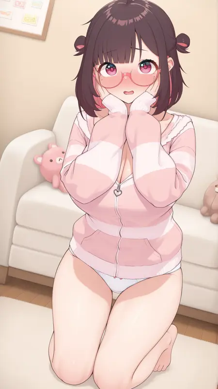 ngsmcstyle, mmirai, mmiraireal, brown hair, pink hair, colored inner hair, medium hair, pink glasses, under-rim eyewear,