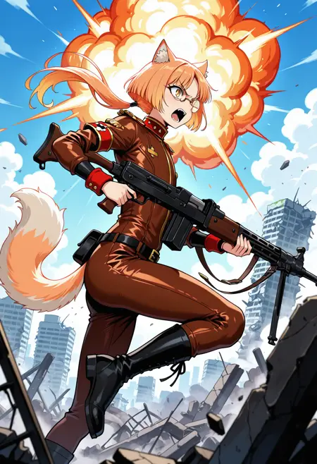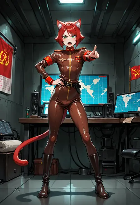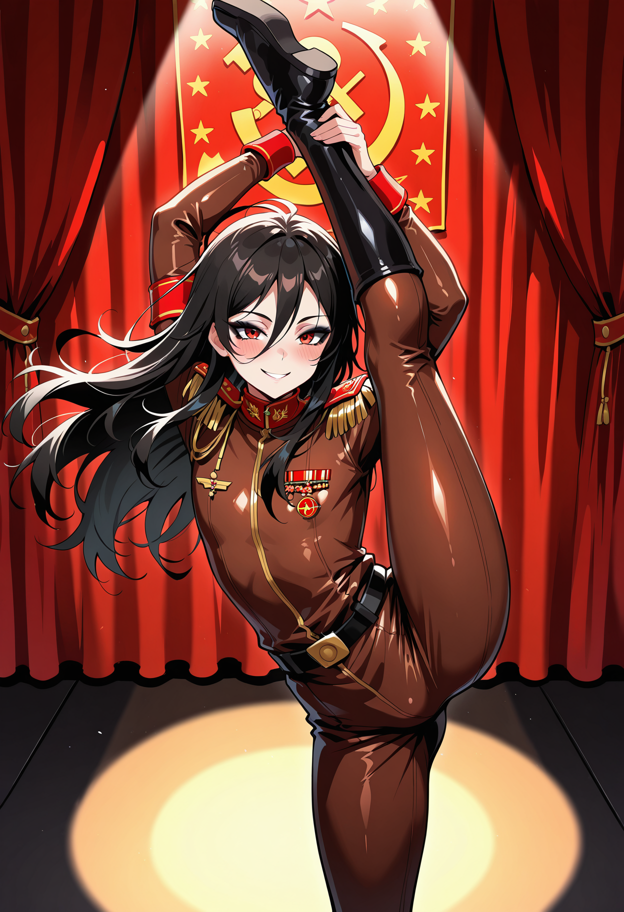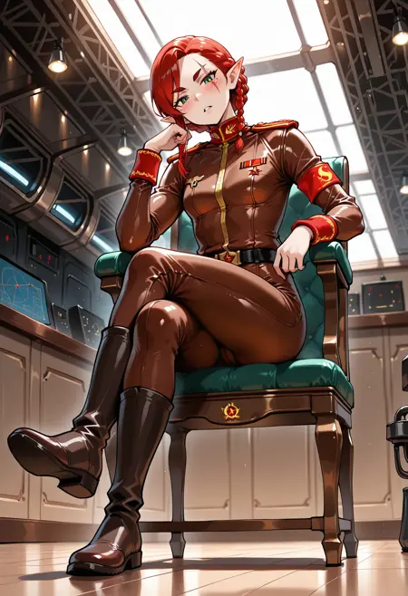 赤い肩章、ブーツ