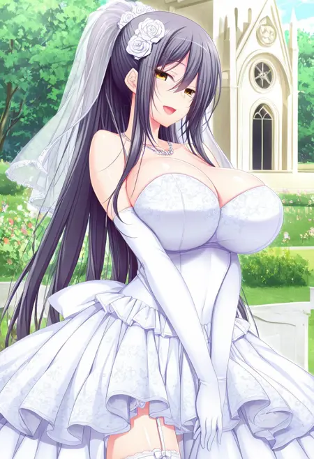 ウェディングドレス、花嫁、花嫁、肘までグローブ、ガーター、ヴェール、髪飾り、スカート、