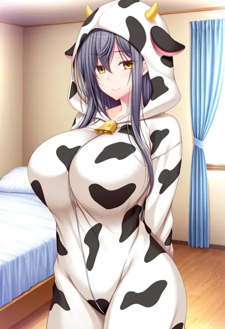 動物コスチューム、フード、牛柄、フードをかぶる、