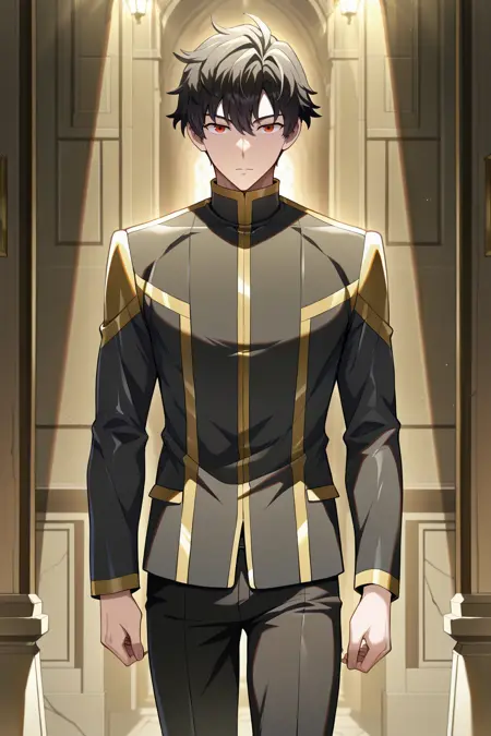 Vikir, vikir van baskerville, black hair, red eyes, bangs