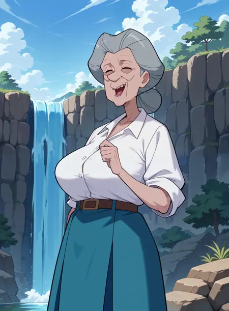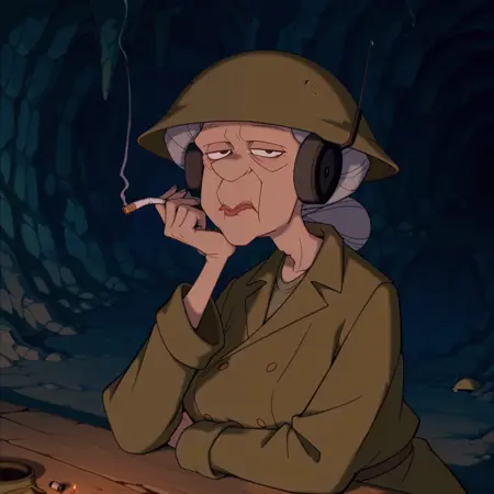 노인 여성, 회색 머리, 낮은 머리 뾰족, 검은 눈