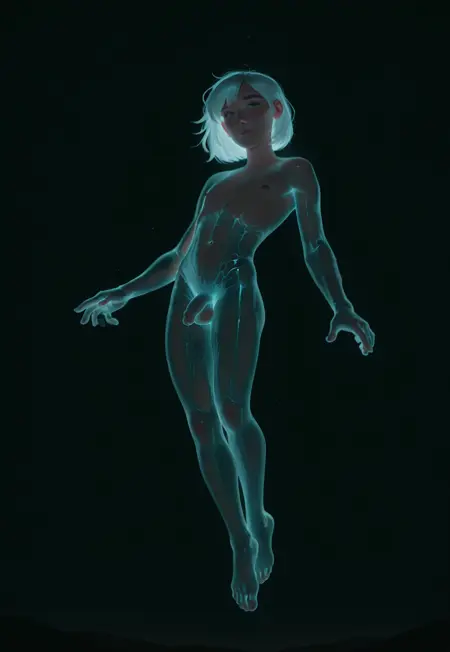 Boo! Scared ya, didn't I? Don't worry, it's just your friendly femboy ghost come to haunt you at night! This model appears as a transparent (sort of), glow-in-the-dark cute femboy to keep you company if you're having nightmares. Beware of ectoplasm, you can't get those stains out of your sheets, believe me, I've tried.