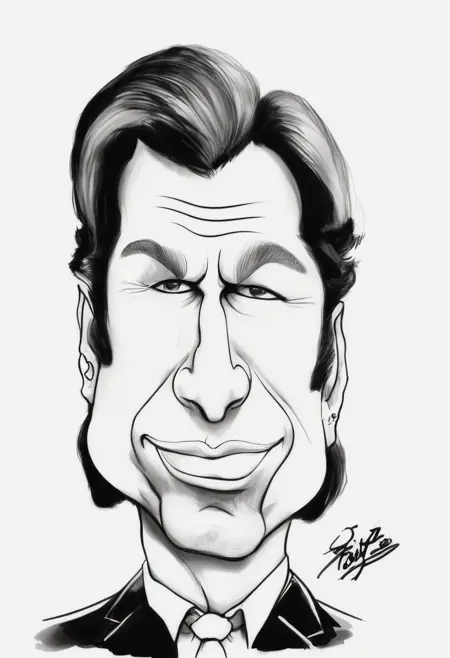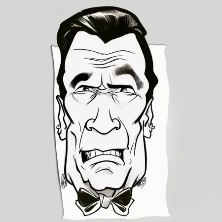 Positive Prompts: "Caricatures style, solo, portrait, simple background, looking at viewer, realistic, shirt, monochrome, greyscale, white background, sketch, upper body, signature, nose, collared shirt, traditional media,jacket, white shirt, thick eyebrows, formal, parody, artist name"