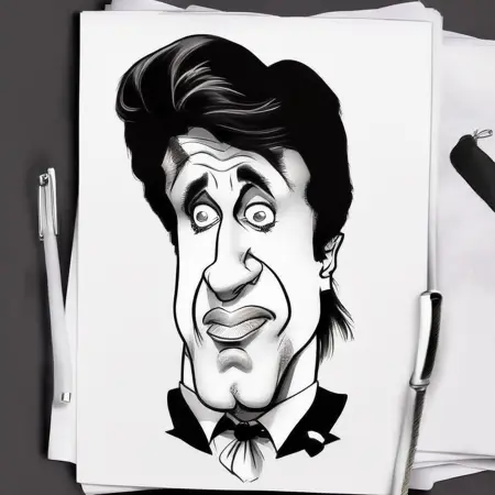 "Caricatures style drawing of null, null2, solo, portrait, simple background, looking at viewer, realistic, shirt, monochrome, greyscale, white background, sketch, upper body, signature, nose, collared shirt, traditional media,jacket, white shirt, thick eyebrows, formal, parody" =was used for a lot of testing