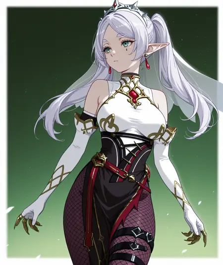 手套、肘部手套、白色手套、白色连衣裙、连衣裙、露肩、分离袖子、无袖、黑色连衣裙、多彩服装、爪子、双色连衣裙、爪形戒指,
