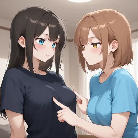 Nipple Guessing Game, Poking Breasts (Yuri) -SDXL