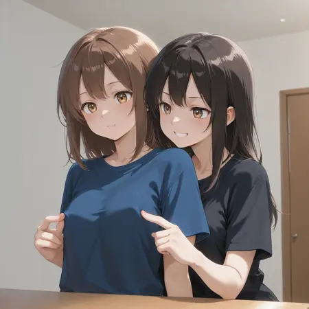 此 LoRA 用于生成网络迷因场景“乳头猜猜游戏”,两名角色面对面,其中一人通过衣物用手指(通常是两根手指)戳另一人的胸部,寻找乳头。目前已有若干相关模型(如异性恋和第一人称视角),但我希望专门为此创作一个更优质的女同题材版本。