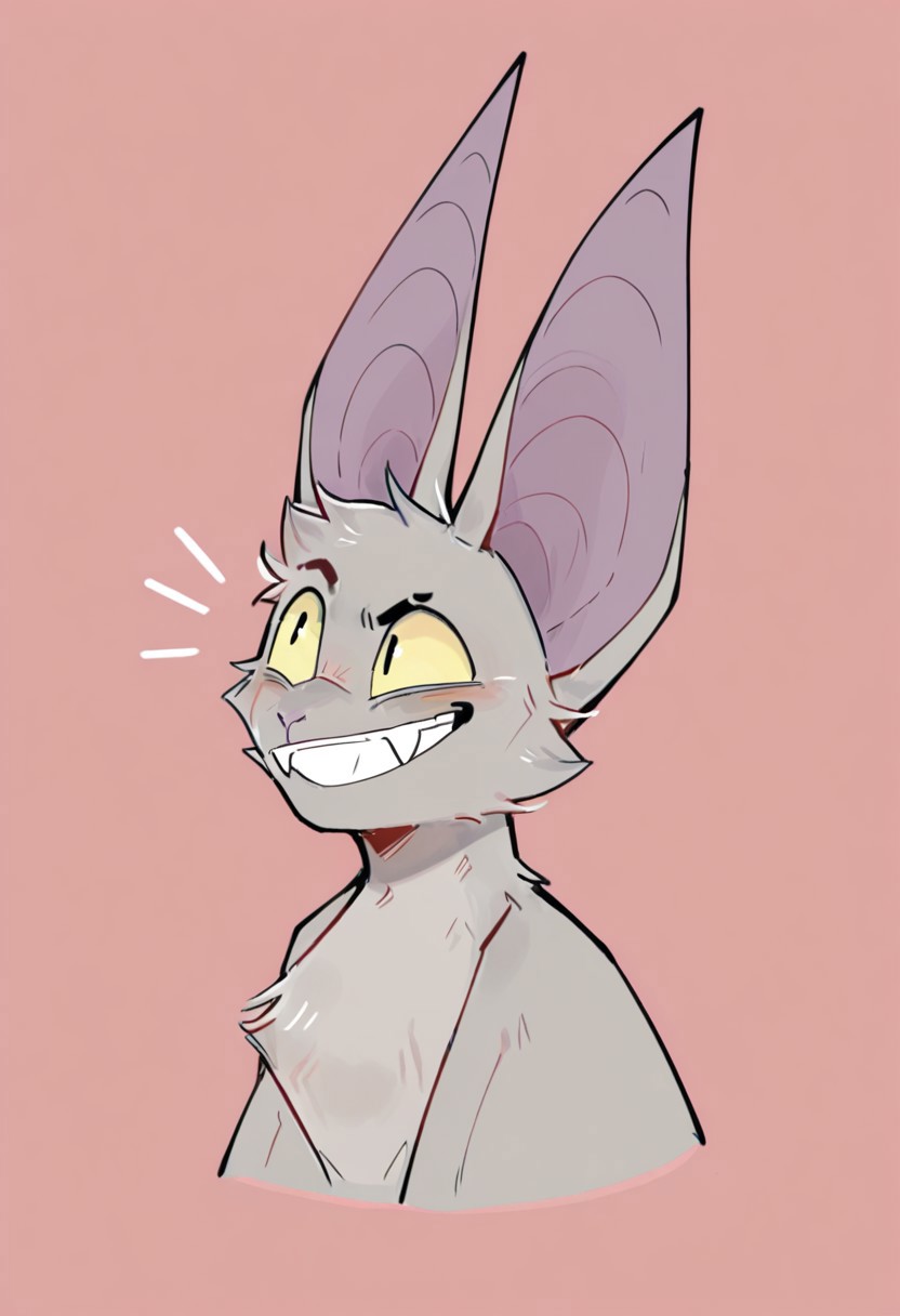 Cosmit/raiyuun, 1boy, bat, grey fur, yellow sclera