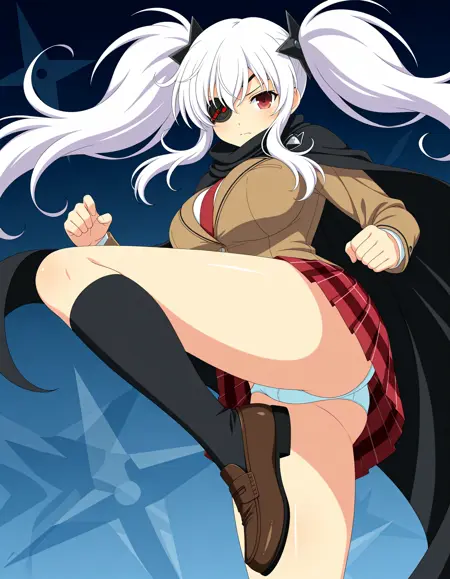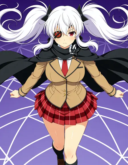 | Trained Words | yagyu (senran kagura),solo,red eye,eyepatch,white hair,long hair,twintails,shuriken hair clips,black hair clips,large breasts,Copied! yagyu_shinobi costume,brown jacket,white shirt,red necktie,black cape,scarf with triangular patterns,plaid pleated skirt,black kneehighs,brown loafers,Copied! yagyu school clothes,white buttoned shirt,white school shirt,skirt,black pleated skirt,black necktie,short sleeves,dark blue kneehighs,brownloafers,Copied! |