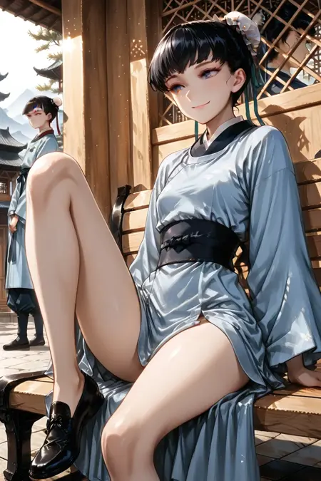她以男装打扮,以避免被男性轻视。据拉han和姚所说,若她穿着男装,看起来会是一位特别英俊的男子。她身高对于女性而言较高,但对于男性而言则较矮。