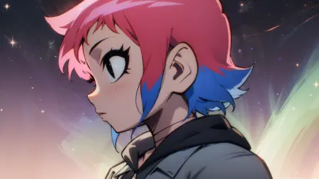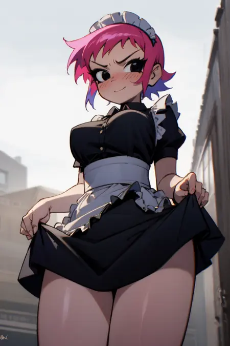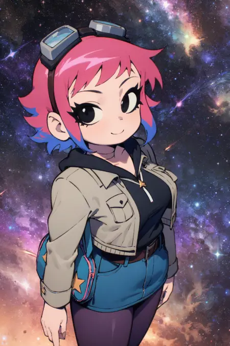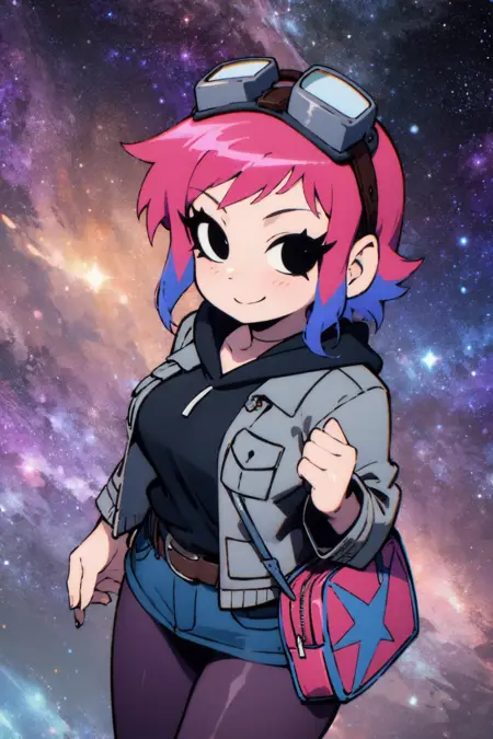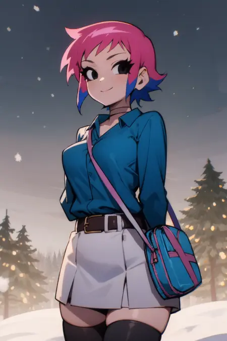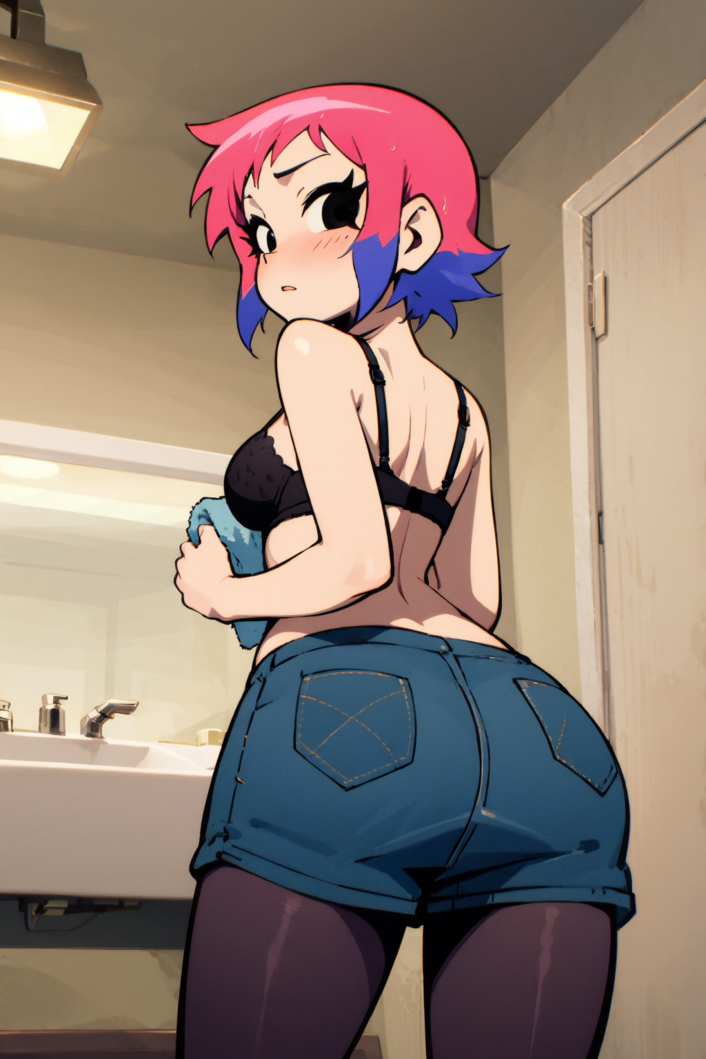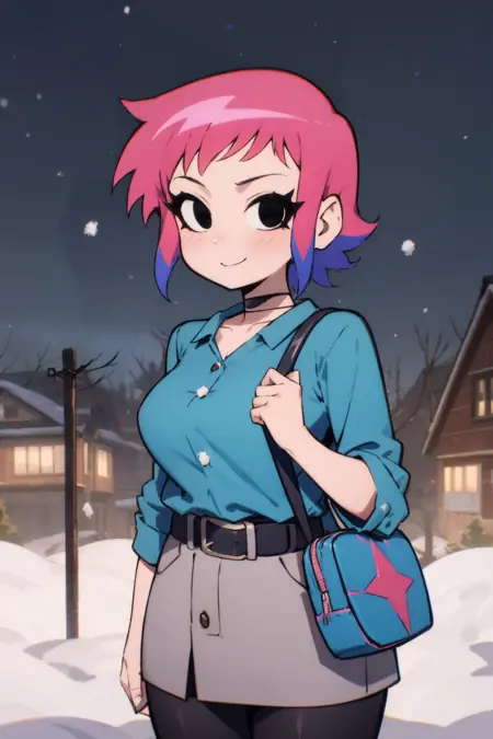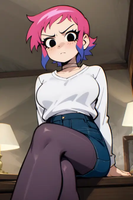 Ramona_Flowers, 1girl, short hair,black eyes, medium breasts