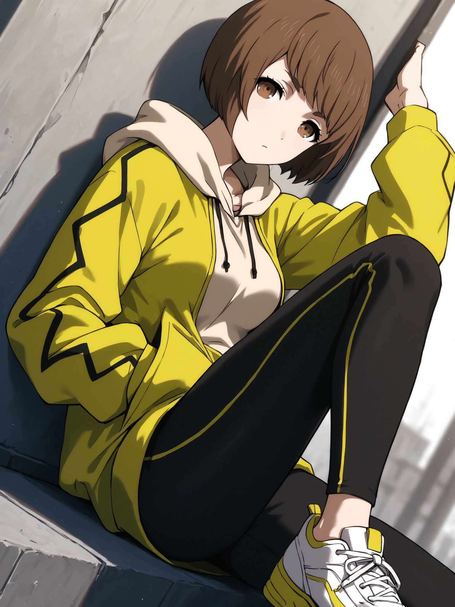 jacket,hoodie,hood down,long sleeves,drawstring,black pants,leggings,sneakers,