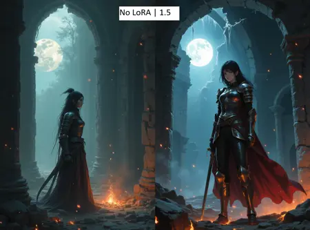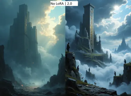 此 LoRA 将每个角色、生物与景观转化为被火焰、月光或远古魔法照亮的史诗叙事瞬间。
