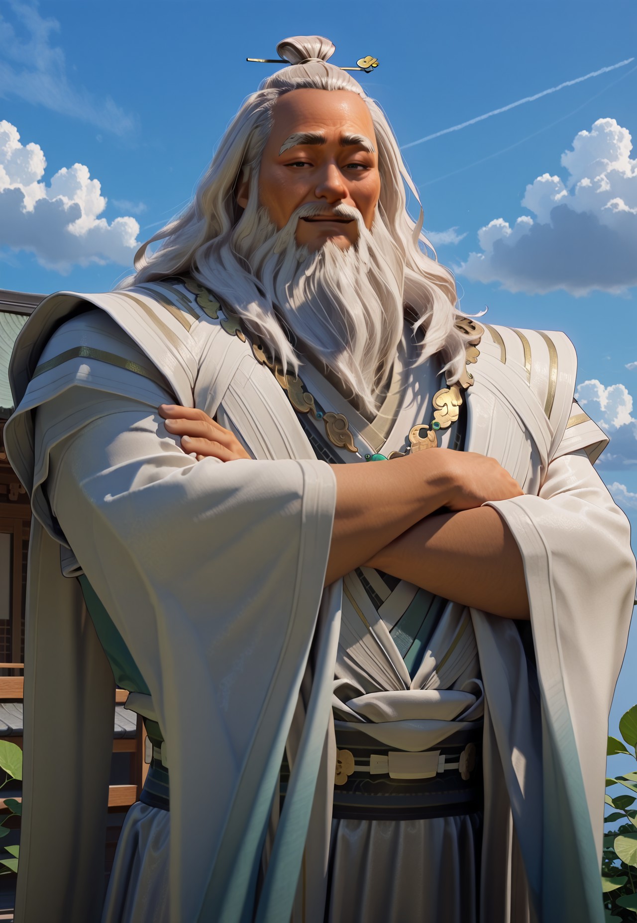 top knot,white hair,long hair,