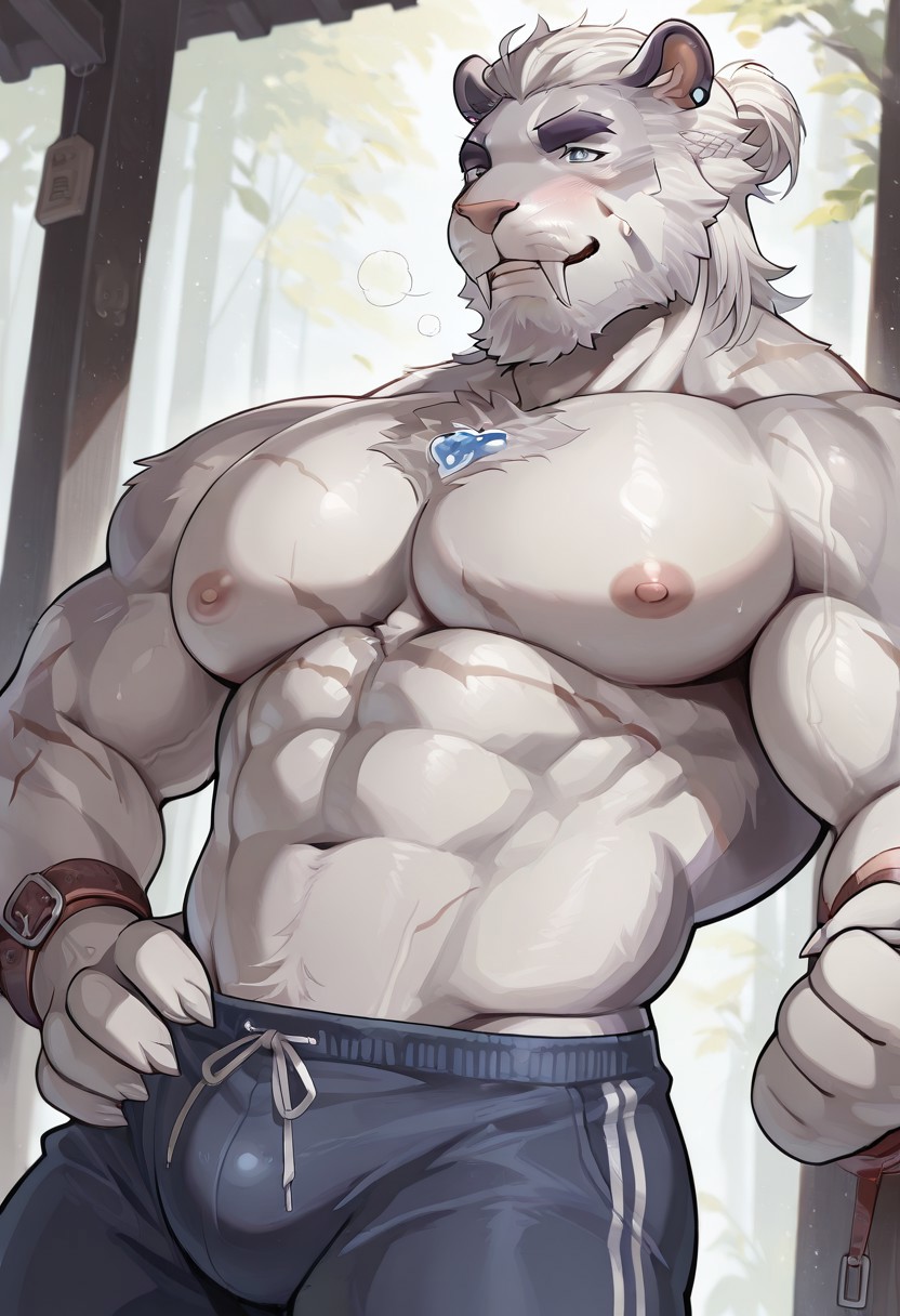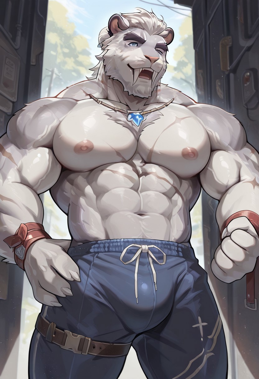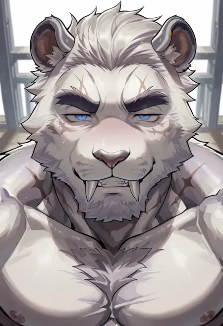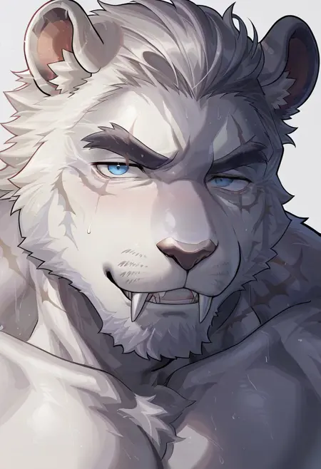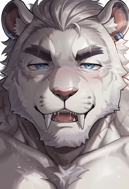 Tiger boy,1v4r,white fur,blue eye,one blind eye