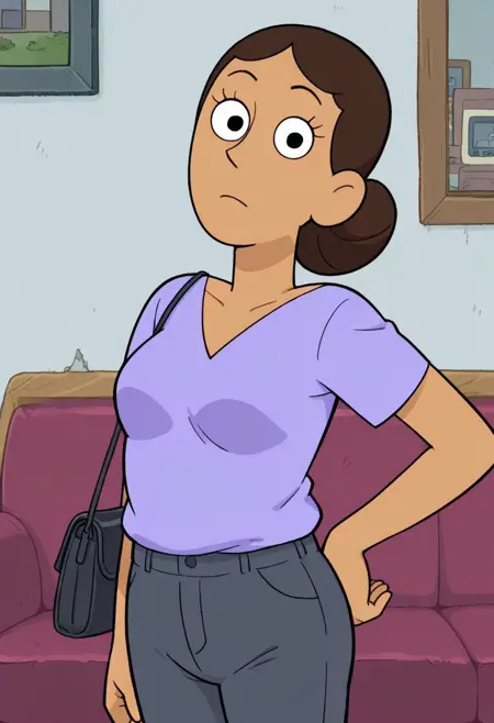 1girl, solo, Lupe_IL, light brown skin, black eyes, brown hair, hair bun