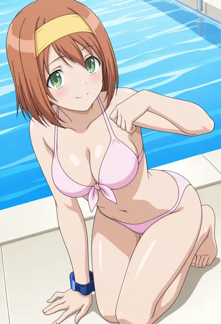 mishima_akane, akane_swim, short hair, brown hair, green eyes,