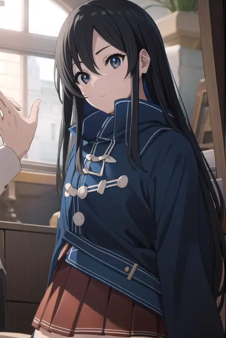 shizuka nanahoshi, long hair, black hair, (black eyes:1.5), sidelocks,