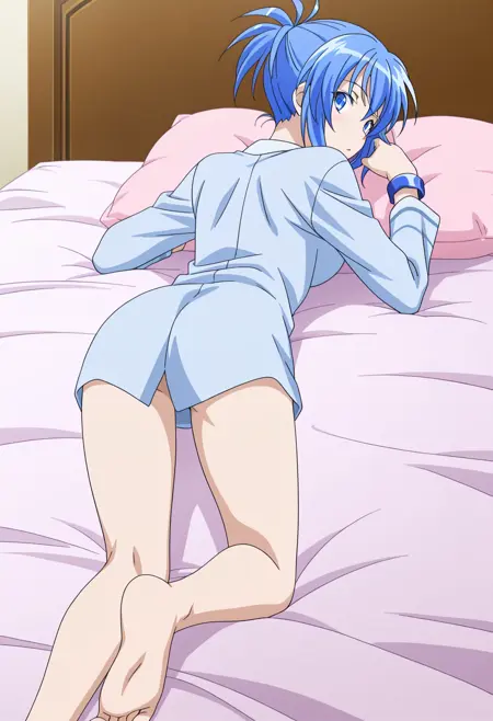 senou_natsuru, natsuru_pajamas, genderswap, blue hair, short hair, ponytail, blue eyes,