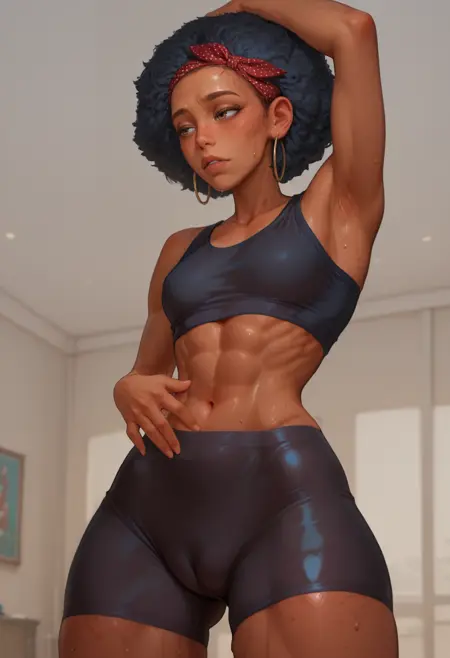 引き締まった体型、腹筋、小ぶりな胸、体のそばかす、大きなお尻