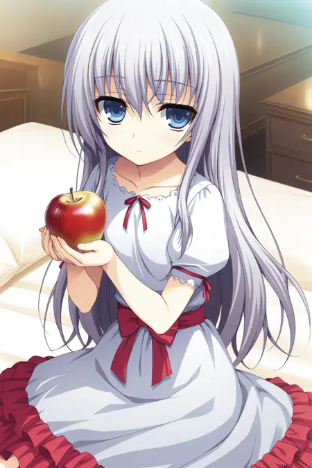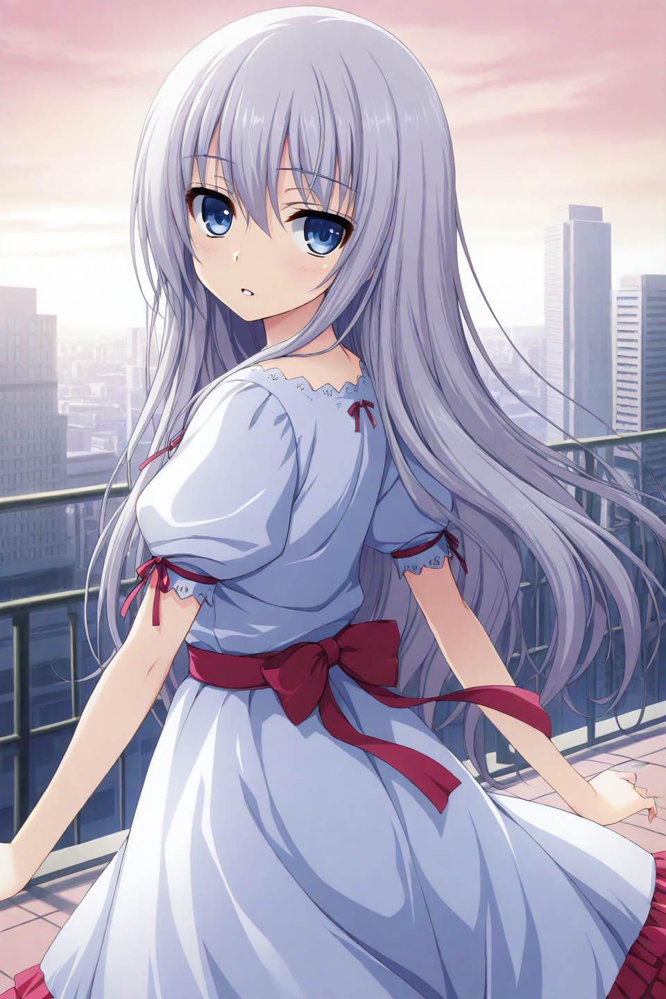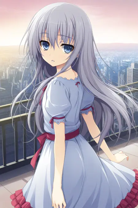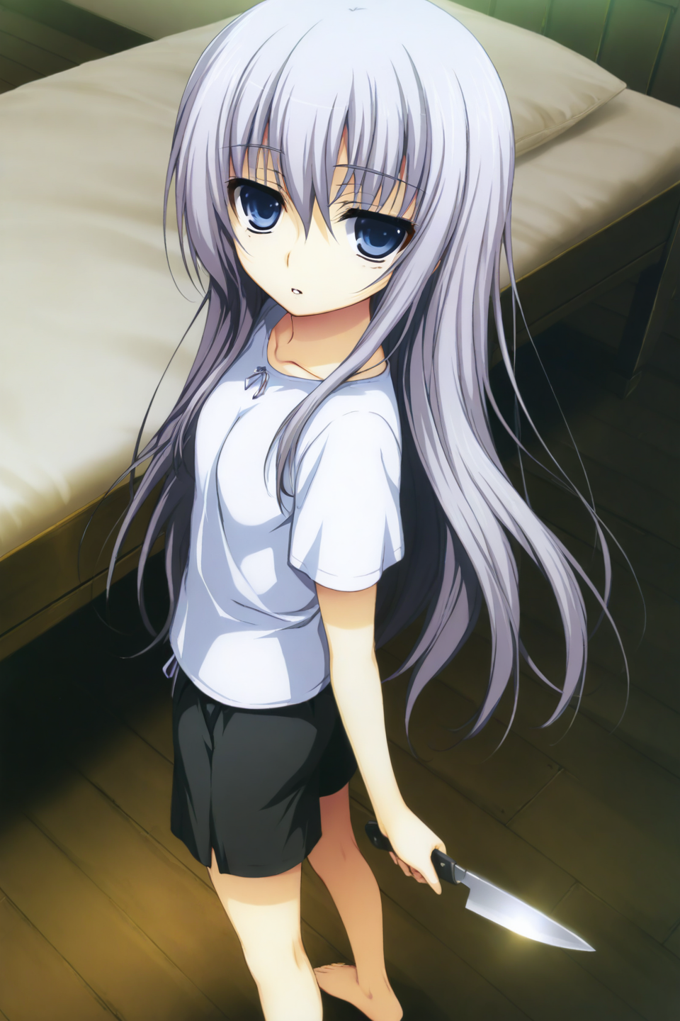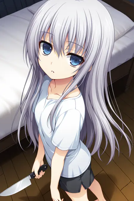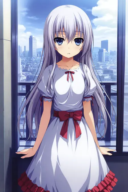 haku-akatsuki,blue eyes,grey hair,hair between eyes,very long hair,straight hair,jitome,petite,