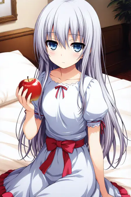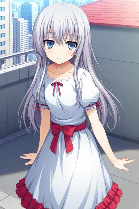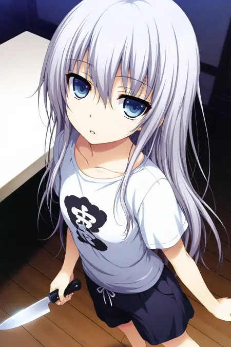 haku-akatsuki,blue eyes,grey hair,hair between eyes,very long hair,straight hair,jitome,petite,